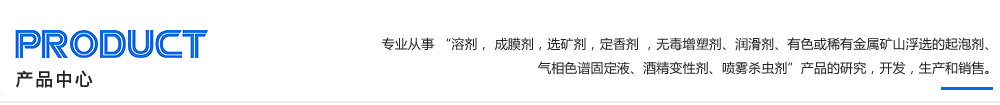 | ? 公司專業(yè)從事 “溶劑, 成膜劑,選礦劑,定香劑 ,無(wú)毒增塑劑、潤(rùn)滑劑、有色或稀有金屬礦山浮選的起泡劑、氣相色譜固定液、酒精變性劑、噴霧殺蟲劑”產(chǎn)品的研究,開發(fā),生產(chǎn)和銷售。 |